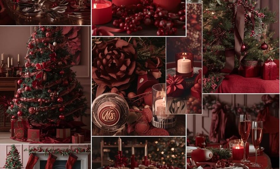 Rood is het hart van kerst. Het roept nostalgie op, warmte, passie en feestelijkheid. Maar in plaats van de standaard rode accenten, wilde ik dit jaar dieper duiken in de nuances. Mijn moodboard is een collage van tinten die samen een verhaal vertellen—een verhaal van elegantie, comfort en een vleugje drama.